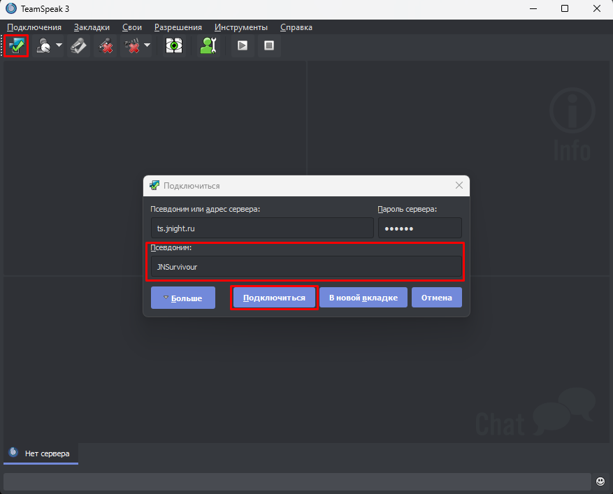 Вы можете подключиться указанными выше парметрами через любой доступный Teamspeak клиент.